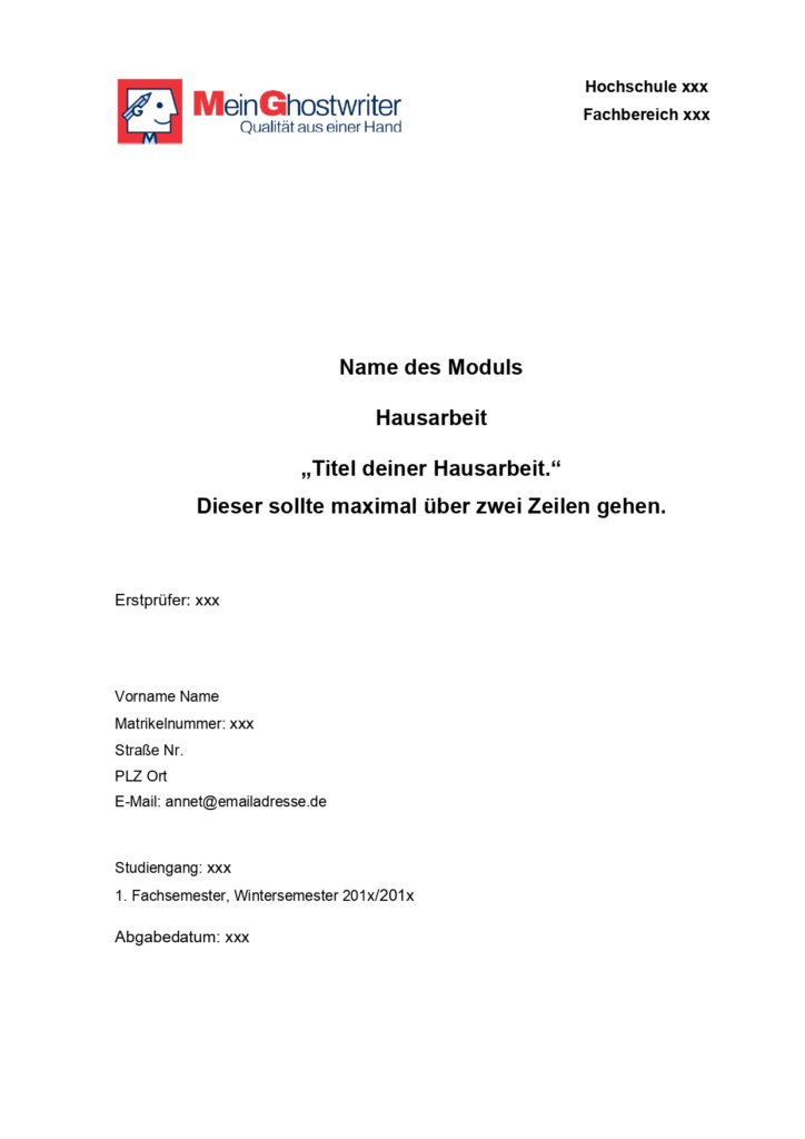 Hausarbeit Deckblatt Vorlage zum Download