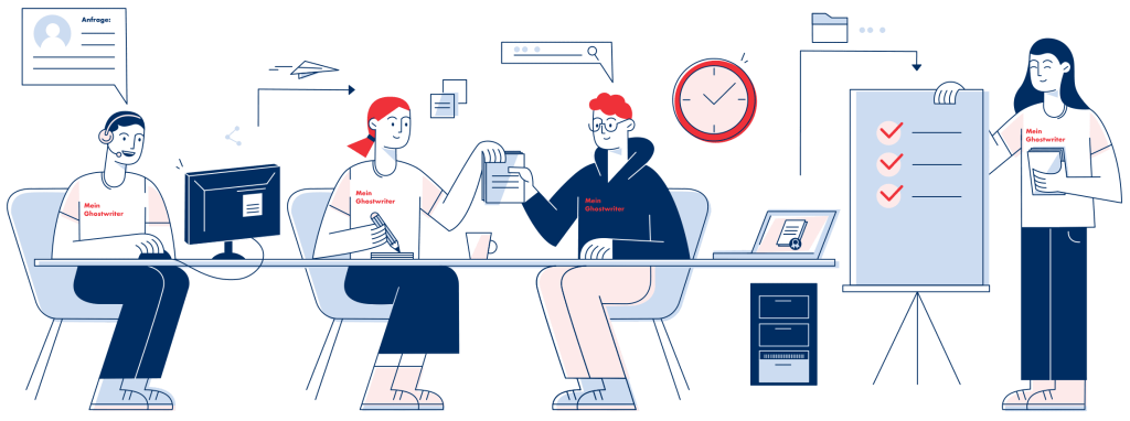 Dieser spricht mit Ihnen die Anfrage durch und stellt sicher, dass wir alle benötigten Informationen haben. Der Manager wählt im Anschluss den passenden Ghostwriter und überwacht in Folge den gesamten Schreibprozess. Jede Seite wird mehrfach Korrektur gelesen, sowohl vom Ghostwriter, dem Manager als auch von einem Lektor, damit die Arbeit sowohl inhaltlich als auch grammatikalisch einwandfrei ist.